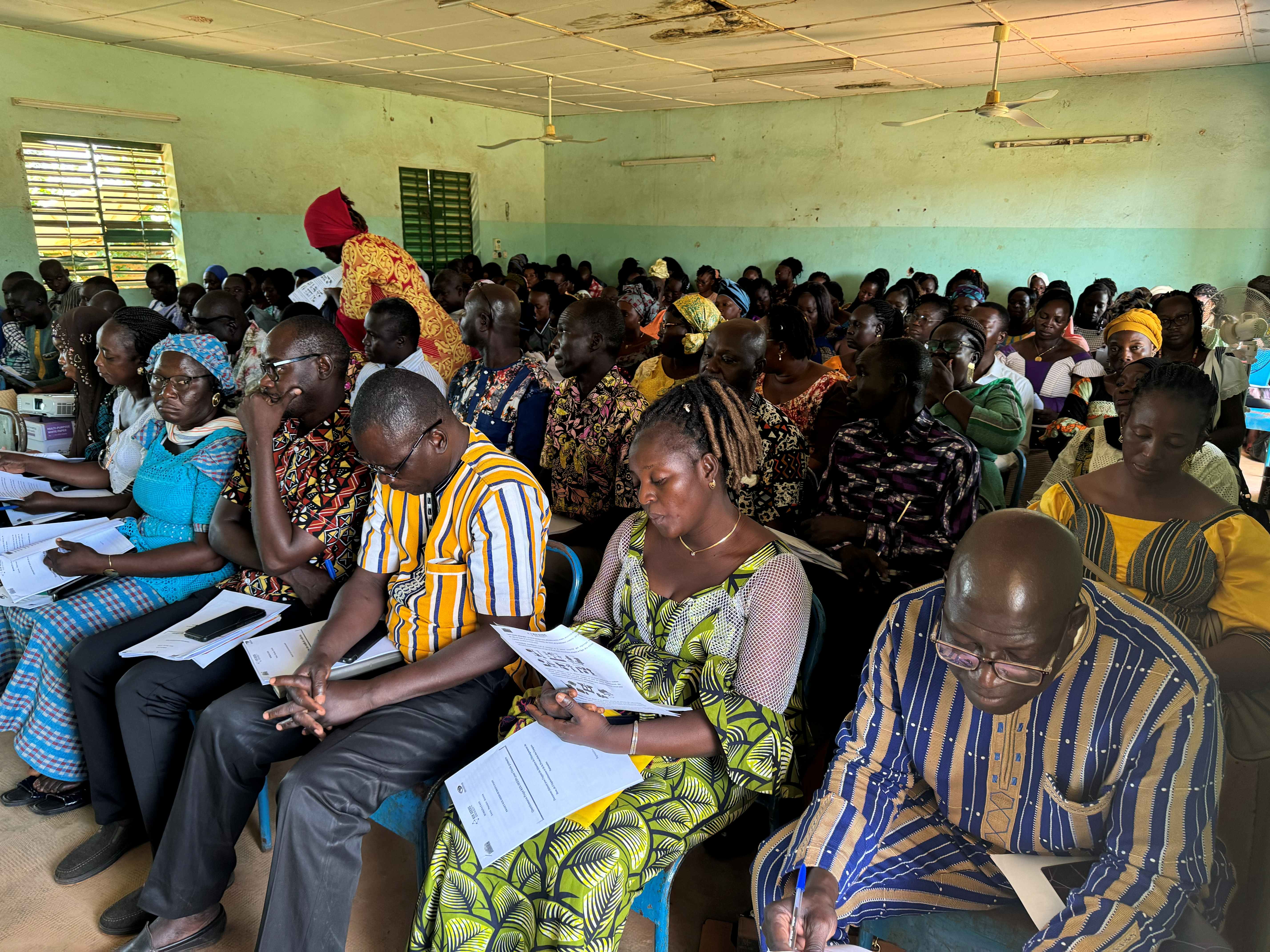 La formation des acteurs de Bingo s’est déroulée du 14 au 15 octobre 2024 dans la salle de la jeunesse de Bingo et a concerné 132 acteurs dont 35 résidents et 97 non-résidents. La formation à Manga a quant à été réalisée du 17 au 18 octobre 2024 à Manga dans la salle de la direction régionale du Centre-Sud. Cette dernière a concerné au total 191 acteurs dont 109 résidents et 82 non-résidents.